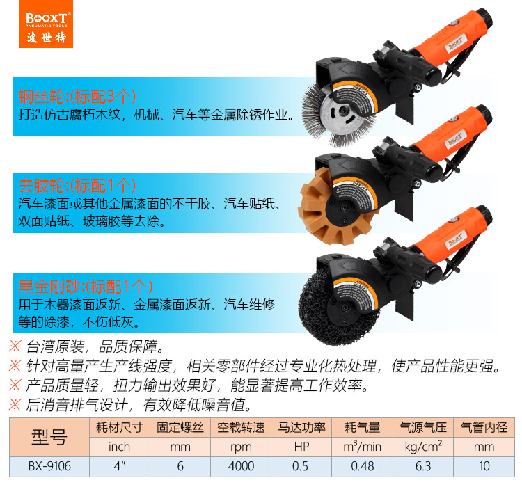 東莞市強勁五金工具有限公司提供臺灣BOOXT波世特品牌氣動工具,除銹去膠去漆套裝機BX-9106廠家直銷,首件享特價。咨詢熱線:4008301980
