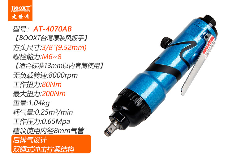 東莞市強勁五金工具有限公司提供臺灣BOOXT波世特品牌氣動工具,直柄氣動扳手AT-4070AB廠家直銷,首件享特價。咨詢熱線:4008301980