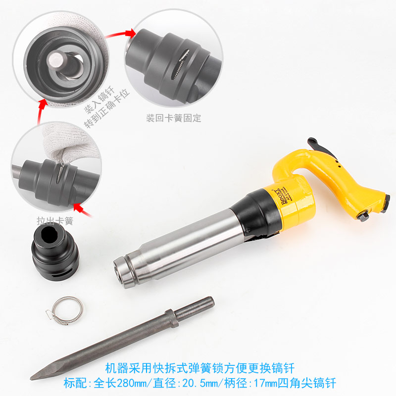 • 產(chǎn)品用途: 配合不同規(guī)格的鏟頭或鎬尖,去除各種附著物如涂料、鐵銹、焊漬、 鑄件剝離、清除水泥、涵洞巖石破碎等作業(yè)。【工業(yè)型】