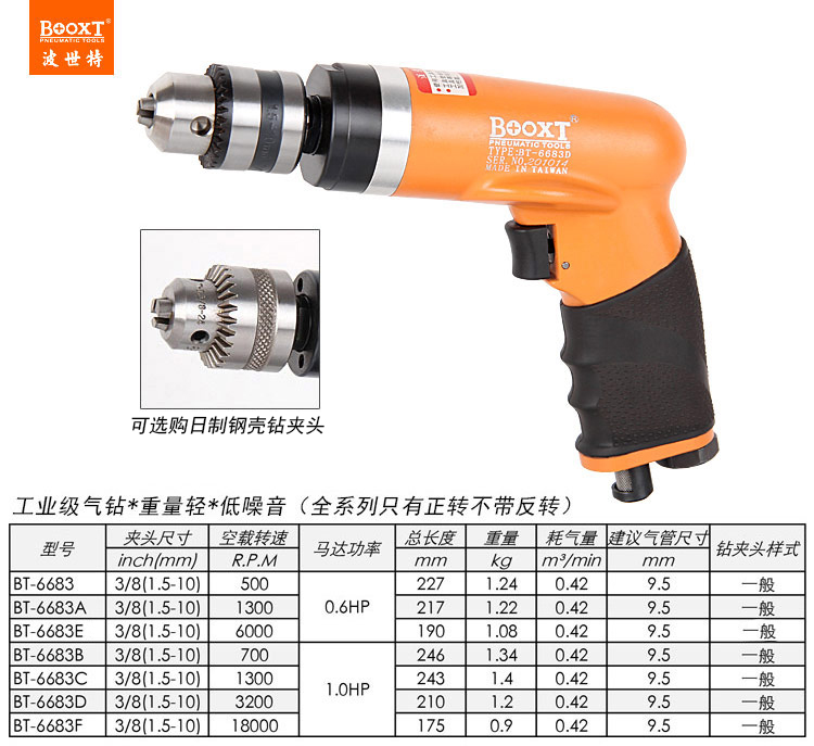 東莞市強(qiáng)勁五金工具有限公司提供臺(tái)灣BOOXT波世特品牌氣動(dòng)工具,1300轉(zhuǎn)航鈦級(jí)氣鉆BT-6683A廠家直銷,首件享特價(jià)。咨詢熱線:4008301980