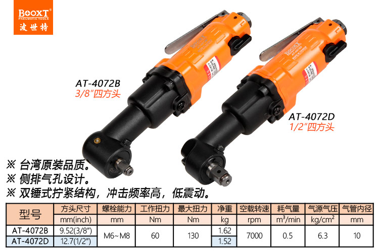 東莞市強勁五金工具有限公司提供臺灣BOOXT波世特品牌氣動工具,角向氣動扳手AT-4072D廠家直銷,首件享特價。咨詢熱線:4008301980