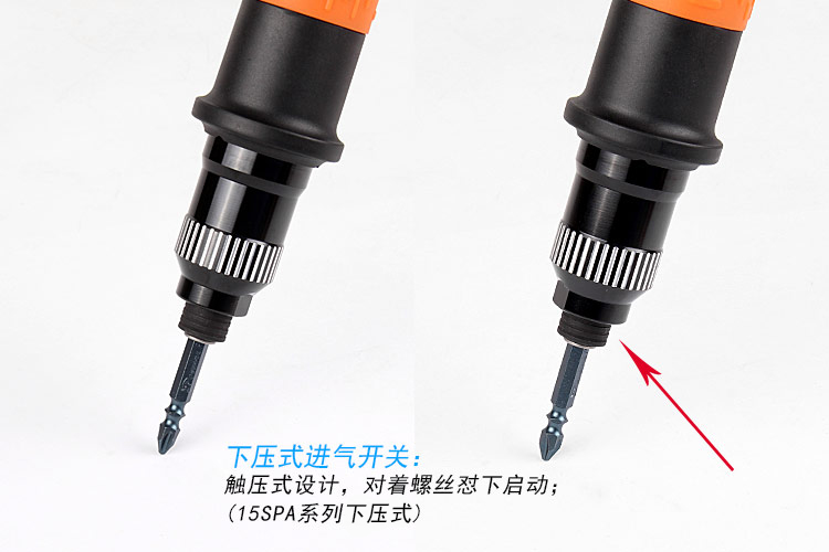 A.觸壓式(全自動):靠風批頭頂螺絲頭啟動,到達預設扭力自動停止。(效率高)