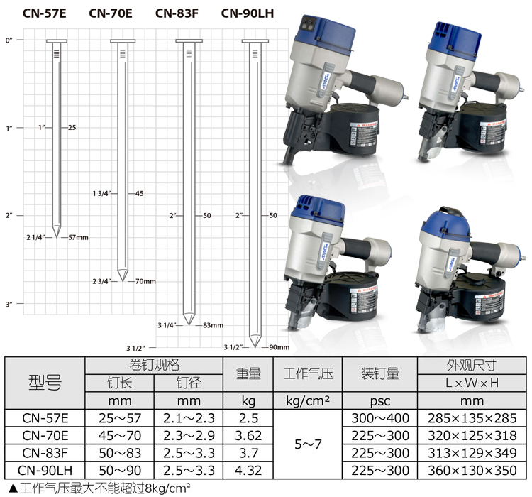 進(jìn)口氣動(dòng)卷釘槍CN-57E特點(diǎn):