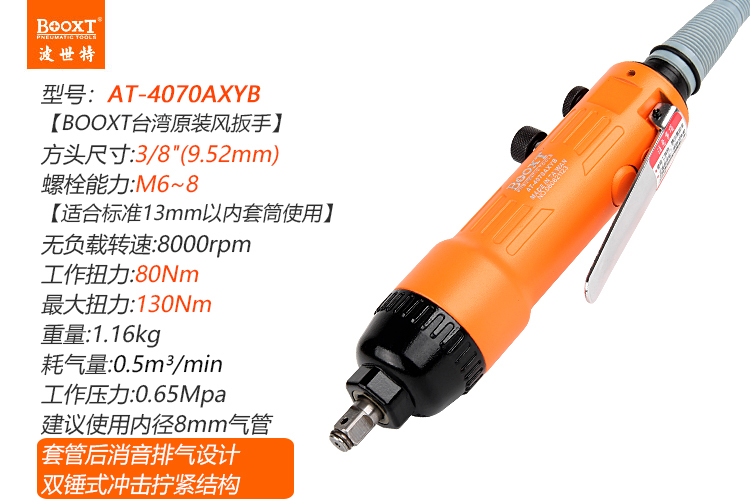 東莞市強勁五金工具有限公司提供臺灣BOOXT波世特品牌氣動工具,直柄氣動扳手AT-4070AXYB廠家直銷,首件享特價。咨詢熱線:4008301980