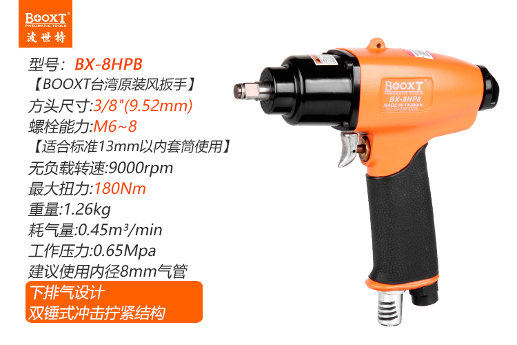 東莞市強(qiáng)勁五金工具有限公司提供臺(tái)灣BOOXT波世特品牌氣動(dòng)工具,小型氣動(dòng)扳手BX-8HPB廠家直銷(xiāo),首件享特價(jià)。咨詢熱線:4008301980