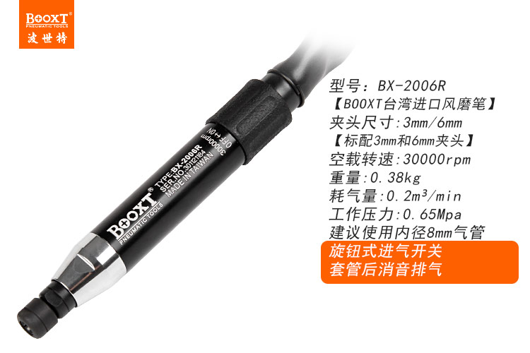 東莞市強勁五金工具有限公司提供臺灣BOOXT波世特品牌氣動工具,氣動打磨筆BX-2006R廠家直銷,首件享特價。咨詢熱線:4008301980