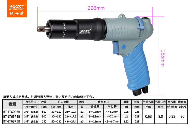 您當(dāng)前的位置: 首頁 > BOOXT產(chǎn)品中心 > 氣動螺絲刀 > 可調(diào)定扭力風(fēng)批 > 風(fēng)動扳手BT-LT65PBB