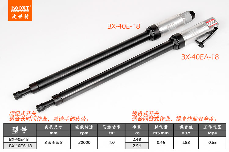 東莞市強(qiáng)勁五金工具有限公司提供臺灣BOOXT波世特品牌氣動工具,加長直磨機(jī)BX-40E-18廠家直銷,首件享特價(jià)。咨詢熱線:4008301980