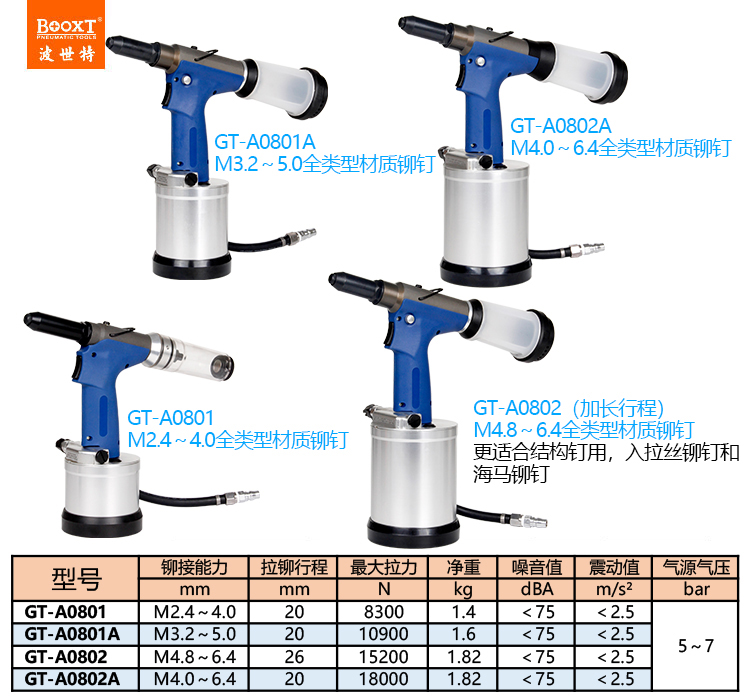 東莞市強勁五金工具有限公司提供臺灣BOOXT波世特品牌氣動工具,氣動拉釘鉚槍GT-A0802A廠家直銷,首件享特價。咨詢熱線:4008301980