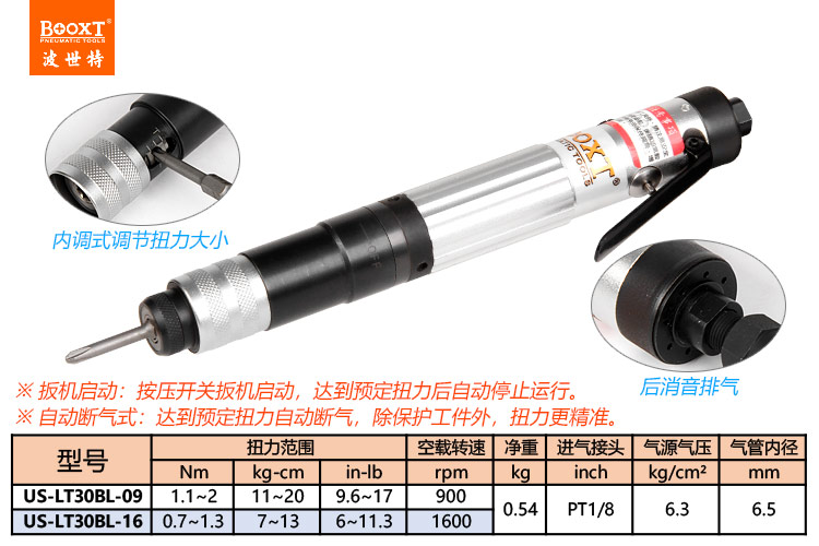 東莞強(qiáng)勁五金工具有限公司提供臺灣BOOXT波世特氣動工具,定扭力風(fēng)批US-LT30BL-16系列廠家直銷,首件享特價。咨詢熱線:4008301980