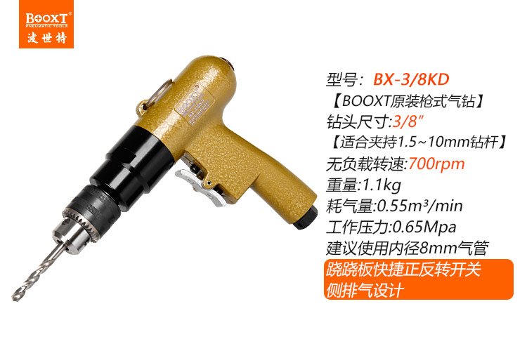 東莞市強(qiáng)勁五金工具有限公司提供臺灣BOOXT波世特品牌氣動工具,700轉(zhuǎn)氣動鉆BX-3/8KD廠家直銷,首件享特價。咨詢熱線:4008301980