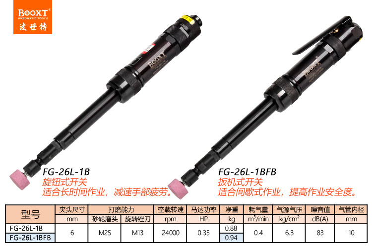 東莞市強(qiáng)勁五金工具有限公司提供臺(tái)灣BOOXT波世特品牌氣動(dòng)工具,高精密氣動(dòng)直磨機(jī)FG-26L-1B廠家直銷(xiāo),首件享特價(jià)。咨詢熱線:4008301980