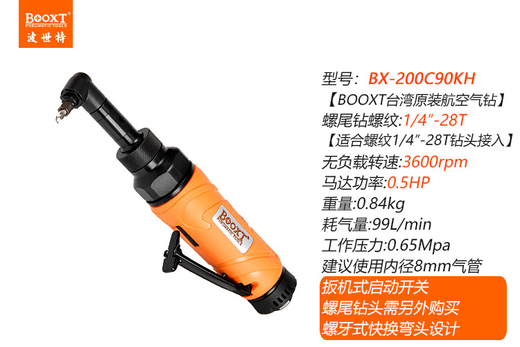 東莞市強(qiáng)勁五金工具有限公司提供臺灣BOOXT波世特品牌氣動工具,彎頭螺尾柄氣鉆BX-200C90KH廠家直銷,首件享特價。咨詢熱線:4008301980