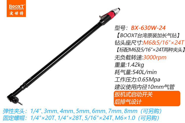 東莞市強(qiáng)勁五金工具有限公司提供臺灣BOOXT波世特品牌氣動工具,特加長螺牙柄氣動鉆BX-630W-24廠家直銷,首件享特價。咨詢熱線:4008301980