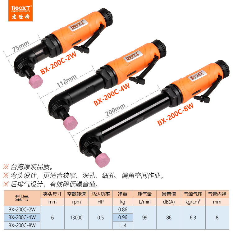 東莞市強(qiáng)勁五金工具有限公司提供臺(tái)灣BOOXT波世特品牌氣動(dòng)工具,直角氣動(dòng)打磨機(jī)BX-200C-4W廠家直銷,首件享特價(jià)。咨詢熱線:4008301980