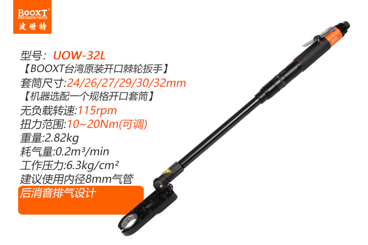 東莞市強(qiáng)勁五金工具有限公司提供臺灣BOOXT波世特品牌氣動工具,加長型氣動開口扳手UOW-32L廠家直銷,首件享特價(jià)。咨詢熱線:4008301980